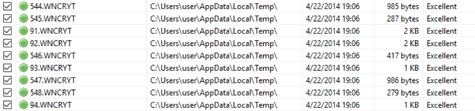 但是研究人员发现,保存在系统盘其他文件夹(非重要文件夹)中的文件是可以从临时目录(例如%TEMP%)中恢复的,但需要数据恢复软件的帮助。研究人员表示,原始文件将会被移动到%TEMP%\%d.WNCRYT(%d为数字值),这些文件中包含了原始数据,而且数据没有被覆盖。