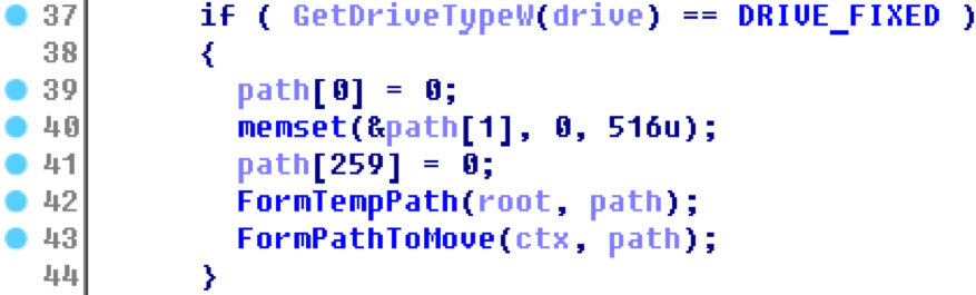 下图显示的是恶意软件为原始文件构建临时存储路径的过程: