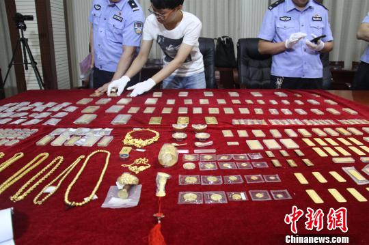 资料图,图为警方起获涉案黄金制品 赵路 摄