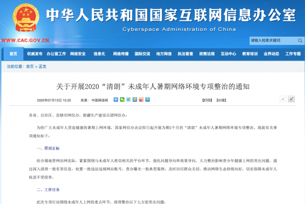 摘要: 为给广大未成年人营造健康的暑假上网环境,国家网信办决定从7月9日起启动为期2个月的“清朗”未成年人暑期网络环境专项整治。结合属地管网治网实际,紧紧围绕与未成年人密切相关的平台环节,强化问题导向和效果导向,大力整治影响青少年健康上网的突出问题,通过深入清理...