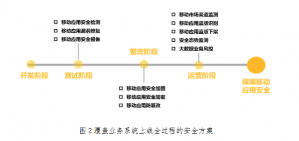 在教育APP上线后,还可提供在线监测及防御,覆盖教育APP系统上线全过程(如下图2所示),可快速具备移动应用安全管理及技术能力,提高教育APP安全开发、测试及运维管控水平,推动SDL安全开发机制的建立,从而确保信息安全有效合规(符合等保等要求),降低因为潜在安全事件发生而带来的业务风险,快速提升信息安全保障能力及信息安全管理工作水平。