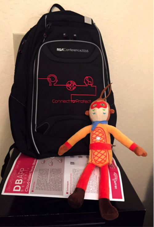小安持通票获得的大会礼品:“Connect to Protect”主题背包。