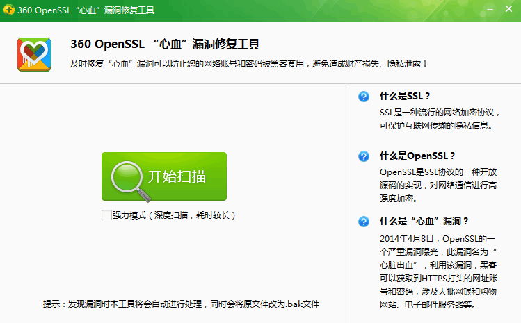 摘要: 近日,针对流行的OpenSSL“心血”漏洞,360发布了漏洞修复工具,软件可以检测并修复本机存在漏洞的文件,打开方式:安全卫士→木马查杀→安全工具箱→“心血”漏洞修复。软件界面介绍了SSL、OpenSSL、“心血”漏洞,只需要点“开始扫描”即可自动处理本地...