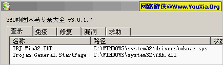 后来网上有人说用360顽固木马专杀大全可以搞定