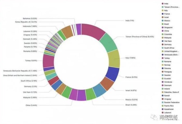 日前,有攻击者在黑客论坛免费公布了一份近50万条Fortinet VPN设备登录凭证清单,据安全研究人员分析,其中包含12856台设备上的498908名用户的VPN登录凭证。这些Fortinet VPN设备的IP分布在全球各地,其中位于中国(大陆+台湾)的设备占比11.89%。