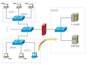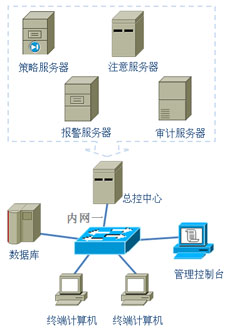 ·总控中心:总控中心由注册服务器、策略服务器、审计服务器、报警服务器组成。这些服务器可分别部署在不同的硬件平台上,也可部署在同一个硬件平台上,视内网规模不同可采用不同的部署方式。