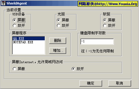 4.限制某些程序的使用,由服务器设定,默认限制notepad和qq的使用
