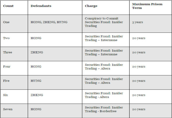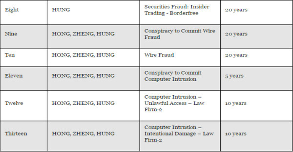 目前,这三人被控合谋从事内幕交易、电信欺诈以及电脑入侵等非法活动。据美国检方的信息,三人目前将面对至少13项指控,每项指控面临的刑期少则5年,多则20年。