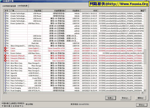 2.检查涉密计算机所有USB设备使用记录,主要针对通过USB连接的手机、数码相机、摄像机等其他数码设备。包括时间、名称、厂商等信息。