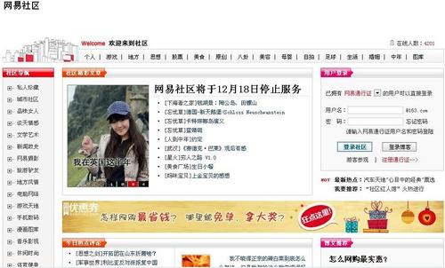 据中国之声《央广新闻》报道,今天凌晨零点,国内著名的门户网站网易的社区频道正式停止运营,当很多人正在为BBS论坛是否日渐没落而大发感慨之际,网易公关部的黄女士昨晚接受记者采访时表示,社区关闭只是正常的业务调整。