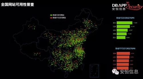 在现场展台,安恒信息智慧城市安全风暴中心受到现场公众广泛关注。智慧城市安全风暴中心通过部署在全国各省的监测节点以及大数据分析平台,可以快速协助各级政府机关做好网站的普查评分工作,实时获取政府网站的可访问性、网站更新频率、栏目更新情况,并可识别网站更新内容是原创或第三方引用,网站中可能存在的敏感、反动、色情言论等,并可智能识别网站的互动栏目,跟踪网站互动回复情况。
