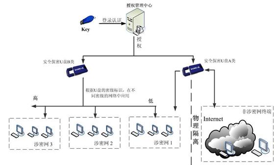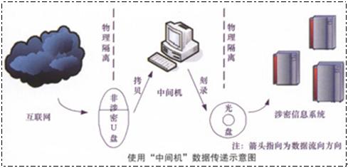 现在很多的政府机关和企事业单位,都采用了专用的移动存储介质管理系统作为涉密网络中数据传输的介质,管理中心通过对介质的授权来控制介质在涉密网或内网中整个生命周期的使用。并控制介质不可在连接互联网的机器上使用。