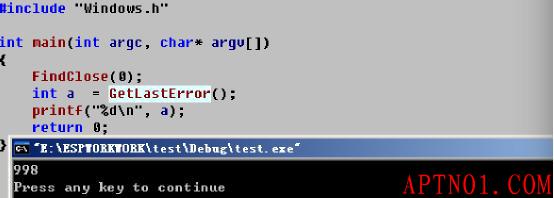 产生异常的原理跟FindClose(0)一样,但这个API在直接运行时不会被触发,这里就不赘述了。
