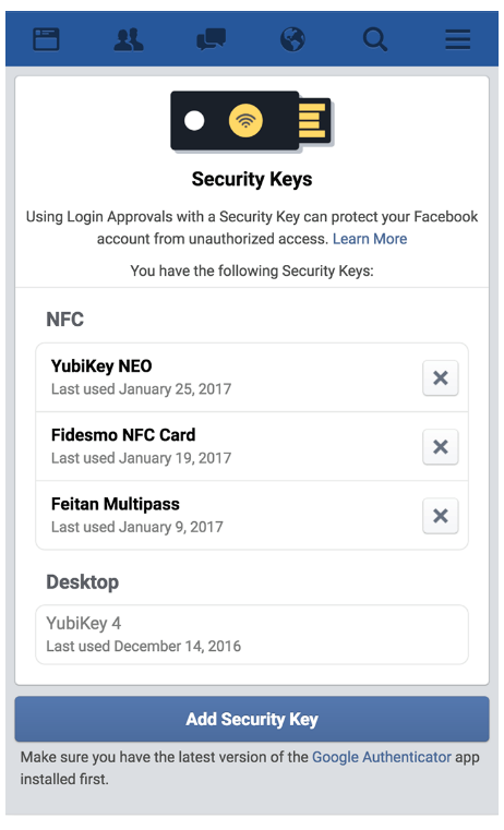 Facebook指出,安全密钥具有一些额外的安全优势,例如可互操作使用。另外它还允许快速登录,没有实体安全密钥的人将很难访问。