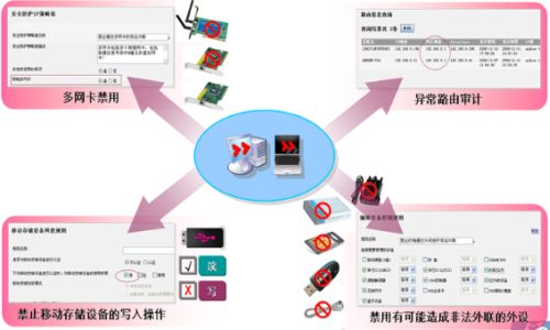 根据合规管理的要求,内网终端电脑对Internet、内部网络和内部的其它终端或服务器的访问,要根据其使用者所在的部门和安全分级管理中的角色,根据管理的需求,只有其中一种或多种的网络互联使用权限;但现实是,即使内网终端有严格的互联规定,但因缺少有效的技术手段,仍有大量终端用户,违规进行“一机多用”和“非法外联”。