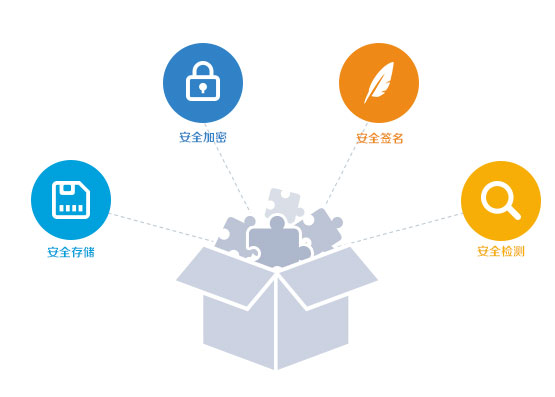 安全组件提供SDK类型的安全组件供开发者进行接入,通过实现多层次的安全机制打造安全沙箱环境来防止应用被黑客或木马所攻击,是一套保障移动平台应用完整性、应用执行环境可信性、数据机密性的专业完整的安全解决方案,且提供应用安全监控服务,帮助开发者了解所发布应用的安全状况与安全趋势。包含安全存储、安全加密、安全签名、安全检测四大核心功能。