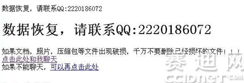 图1 在受损文件夹下破坏者留下了自己的联系方式