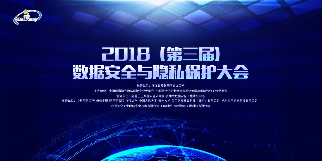 2018年数据安全与隐私保护大会于9月29日在杭州圆满落幕,此次会议由浙江省网信办指导,中国保密协会隐私保护专委会、中国网络空间安全协会网络治理与国际合作工作委员会等主办,中国科学院信息工程研究所、蚂蚁金服、阿里巴巴数据安全研究院、浙江大学、中国人民大学、贵州大学、杭州世平信息科技有限公司等多家单位共同参与。