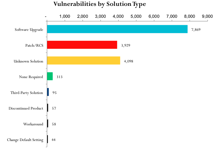 Risk Based Security 总结道:“2018 年报告的大量漏洞,已经有可用的更新版本或补丁”。