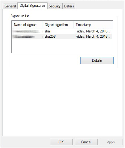 赛门铁克解释到,该木马是他们首次见到的向SHA2迁移的双证书恶意软件(SHA1在去年秋季被宣布不再安全)。
