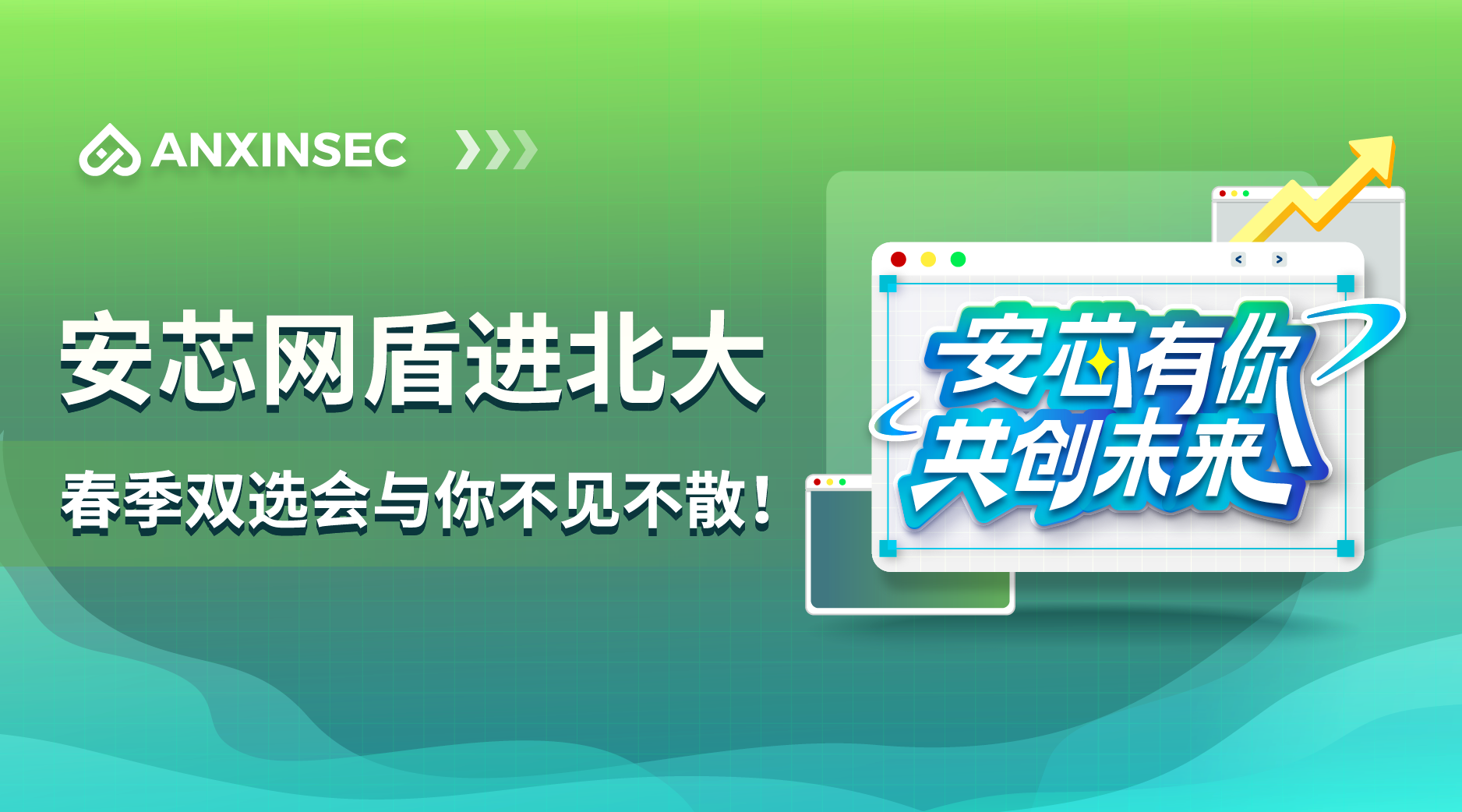 安芯网盾应北京大学就业指导服务中心邀请,将于3月18日(周六)下午14:00-17:00,参加北京大学2023届毕业生春季就业洽谈会。 此次活动为深入学习贯彻党的二十大精神,积极落实就业优先战略,由北京大学主办,旨在进一步满足北大毕业生多元就业需求,拓宽北大毕业生职业选择视野,同时满足用人单位招才引智需求,搭建毕业生与用人单位双向选择的优质服务平台。 欢迎北大同学们凭校园卡或学生证,由邱德拔北广场...