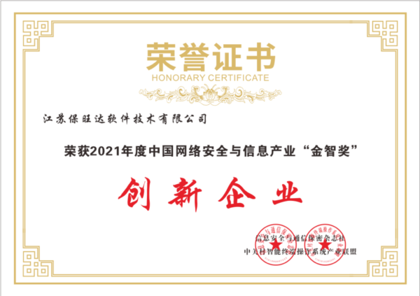 近日,由信息安全与通信保密杂志社主办,中关村智能终端操作系统产业联盟协办的2021年度(第六届)“中国网络安全与信息产业金智奖”(以下简称“金智奖”)评选结果公布,江苏保旺达软件技术有限公司(以下简称“保旺达”)斩获“创新企业”和“优秀产品”两项行业大奖。 本届“金智奖”在参选企业的大力支持和业界同仁的广泛关注下,共有近百家企业、120余位专家评委、50余位媒体评委以及1000余位专业评委报名参与...