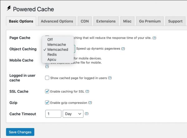 WordPress具有内置的对象缓存,但是默认情况下对象缓存是非持久的。这意味着存储在缓存中的数据仅驻留在内存中,并且仅在请求期间内。 Powered Cache带有三个不同的对象缓存后端,以节省持久性。 Memcache 要求:Memcached服务器和PECL memcache扩展。 Memcache后端使用127.0.0.1作为默认的Memcached服务器。如果要使用其他服务器,则需要进行...