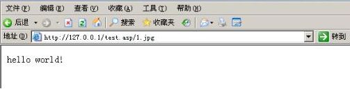 第二种是上传名为 "test.asp;.jpg" 的文件,虽然该文件真正的后缀名是 ".jpg",但由于含有特殊符号";",仍会被 IIS 当做 asp 程序执行。