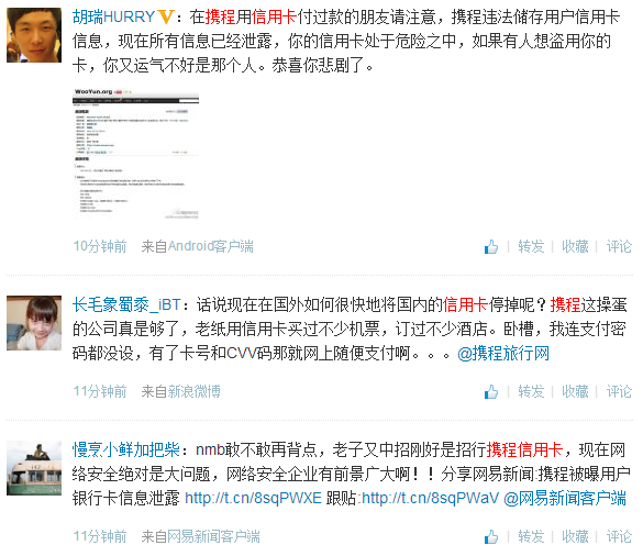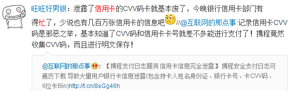 由于CVV对信用卡而言事关重大,因此很多朋友在新浪微博已经提出了自己的担忧: