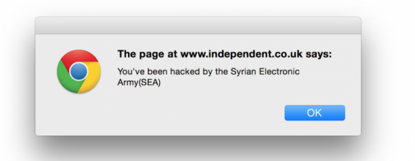 叙利亚电子军已经攻击了英国《独立报》、《镜报》以及CNBC官网。推特网友表示,《PC世界》、《福布斯杂志》、《OK杂志》、 NHL、Elsevier以及戴尔英国官网也受到了影响。在英国当地时间今天中午,用户访问上述网站时候,都会弹出窗口表示:“你已经被叙利亚电子军(SEA)入侵”。之前,亲阿萨德的黑客集团已经参与了针对Facebook、Twitter账户的攻击,并且在其中部署恶意软件。
