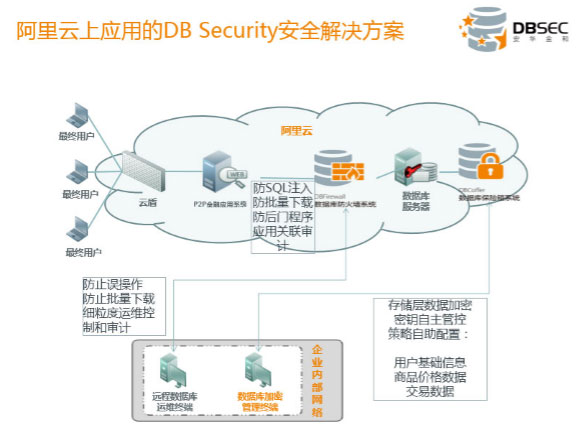 对此,安华金和作为专业的数据库安全提供商,为广大用户及合作伙伴提供优质的数据库安全运维产品及解决方案,以此解决用户的安全运维问题。以P2P金融为例,截止2014年11月,已有近165家P2P平台由于黑客攻击造成系统瘫痪、数据被恶意篡改、资金被洗劫等情况。平安董事局主席马明哲曾对此表示“P2P网贷平台其技术要求不亚于银行,甚至比银行还要高。但现实情况是,大多数P2P网贷平台无论在架构、数据库、安全防范方面,应对黑客的攻击能力几乎为零。”安华金和在云端针对数据库内核心数据的安全防护方案部署办法:将数据库防火墙(DBFirewall)部署在数据库服务器前,以实现来自外部人员的攻击和内部人员的误操作。数据库防火墙可针对批量删除或是批量下载等针对数据库的操作行为进行细粒度控制,并实现100%应用用户关联;同时通过对SQL语法/词法进行精确协议解析,防止外部对数据库漏洞的攻击和SQL注入、刷库等行为。同时,云环境下,为了防止数据库存储文件丢失,导致整库泄密,安华金和数据库保险箱(DBCoffer)通过对数据库敏感字段的加密,防止因数据明文存储导致库内敏感信息泄露,防止拖库行为的发生。